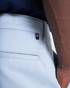 Find a short that you love wearing. Lay this short flat, placing the front waistband (with button and fly fastened) directly over the back waistband. Measure from the top left side across to the top right side, as pictured below.