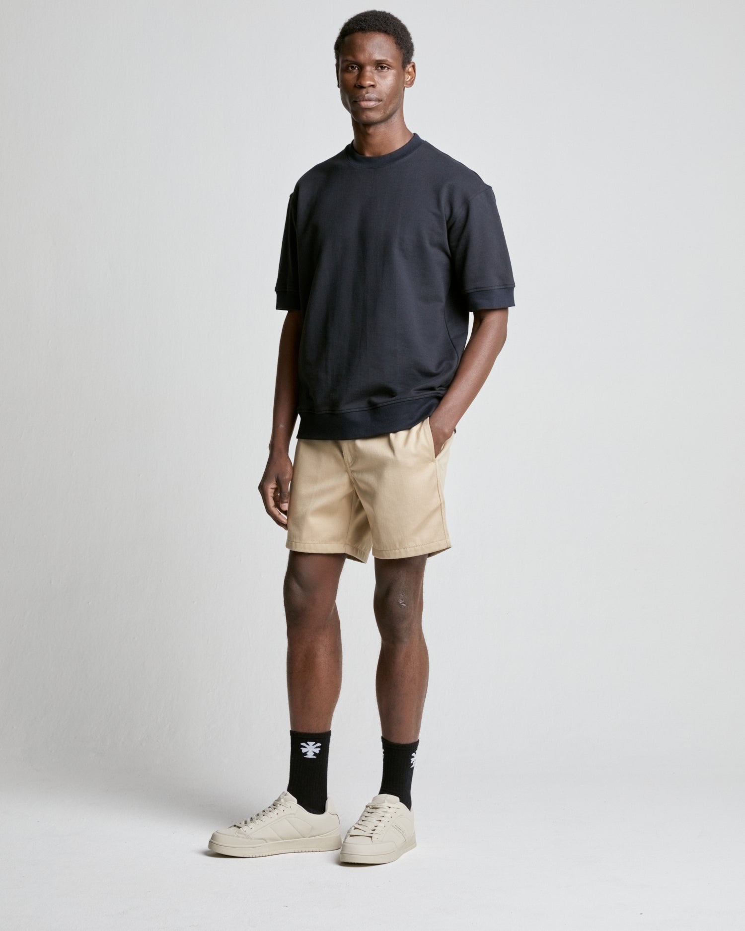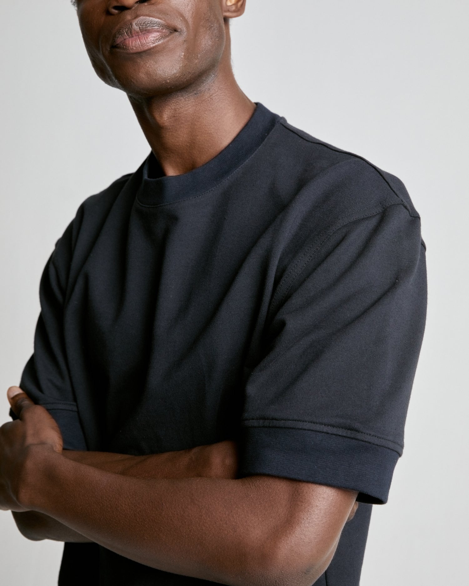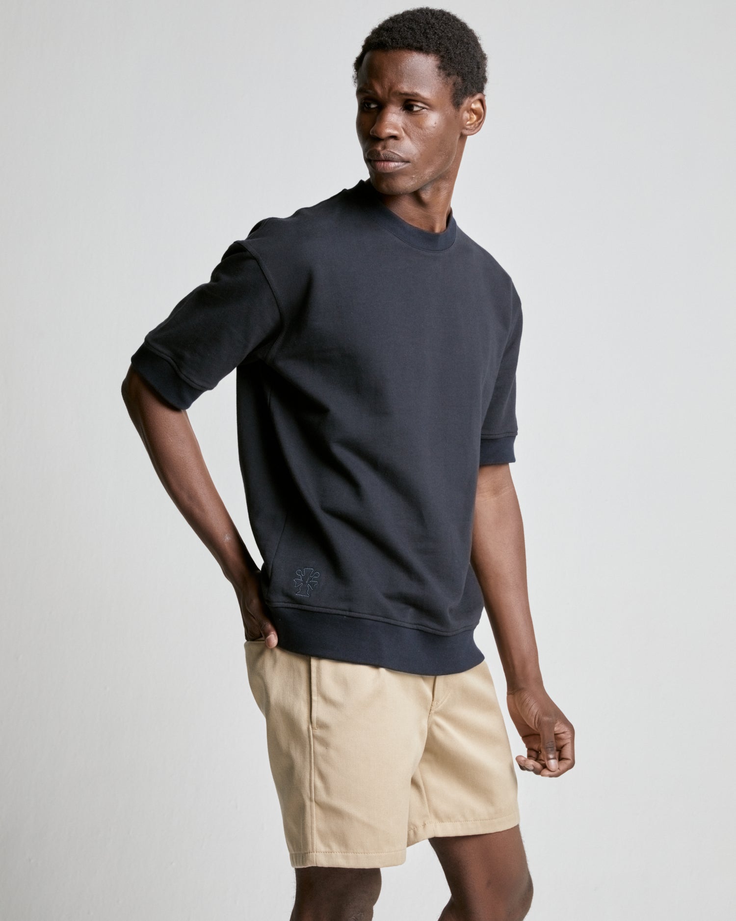 This sweater has a relaxed oversized fit. Lucas is 188cm tall and wears a size medium in Black Beauty.