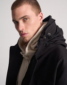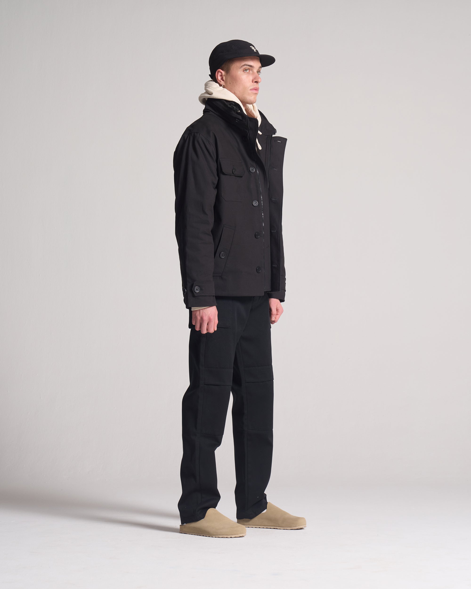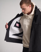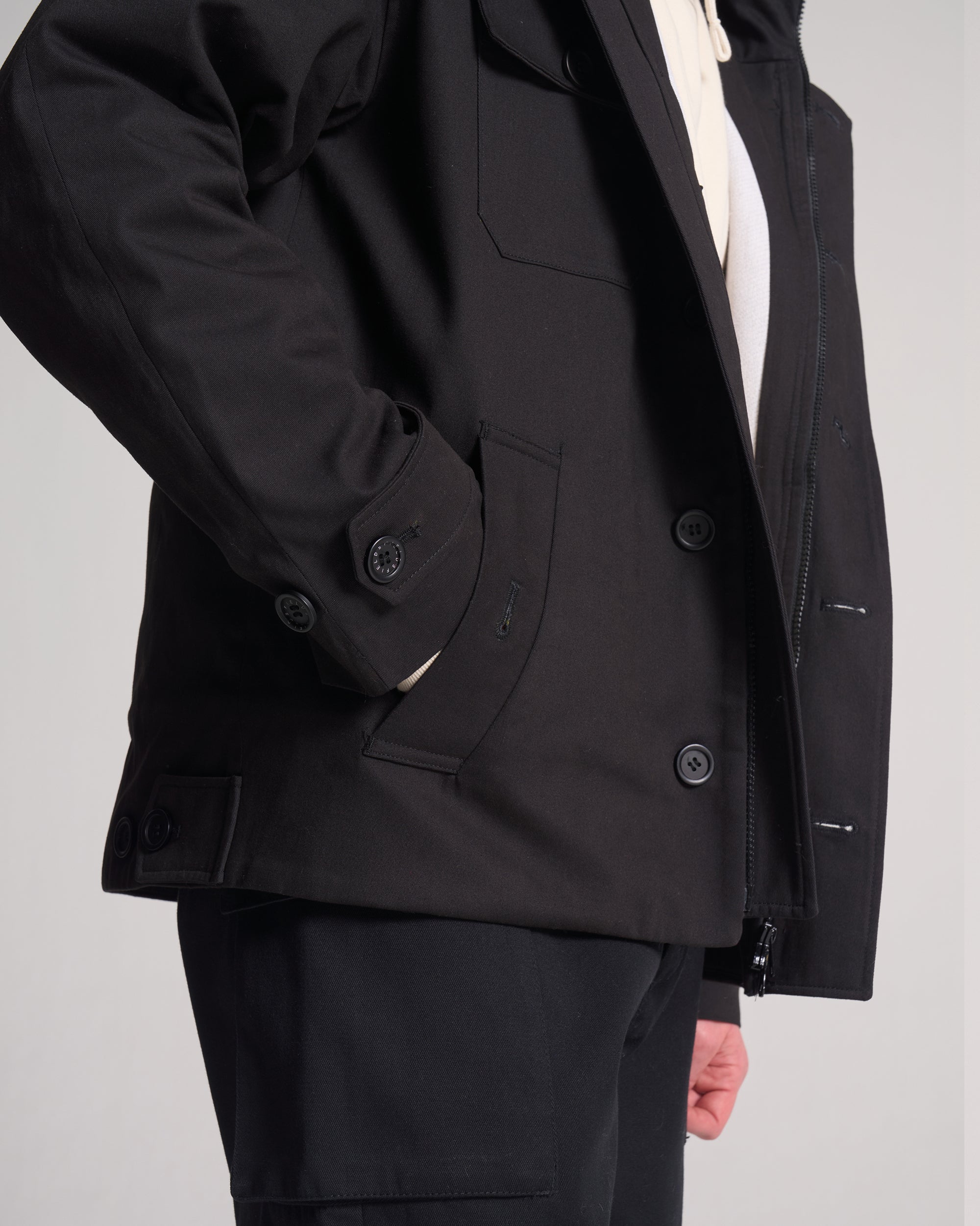 **Centre back length to hem - garment is lying flat. At the mid point of the back neck, measured in a straight line down to the jacket's hem.