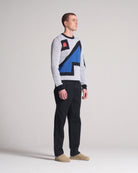 This sweater has a regular fit and is true to size. Brad wears a size medium and is 187cm/6.1ft tall. Chest is 97cm/38.1".