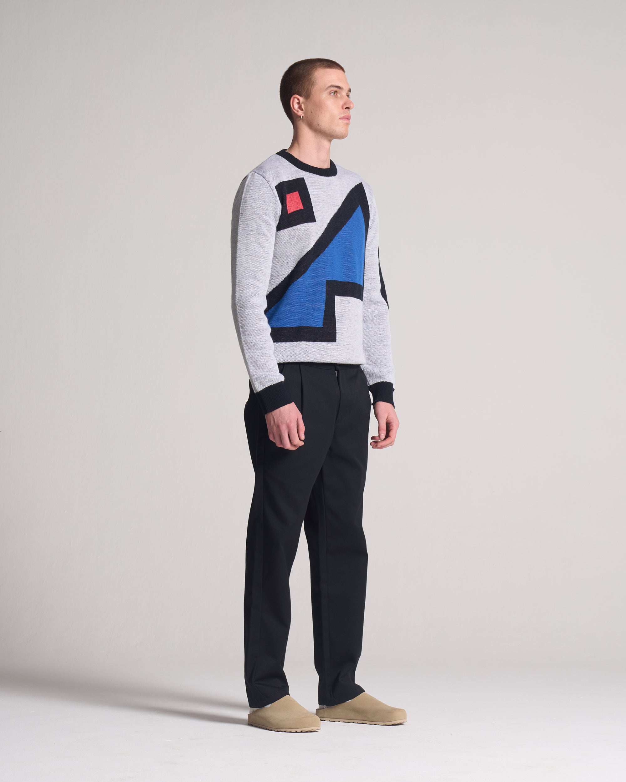The Artist Collaboration Sweater falls under our 'Art' line which embodies our belief that your work is what you give to the world. This soft, mid-weight, round-neck sweater is knitted in a Merino wool and kid Mohair blend yarn.