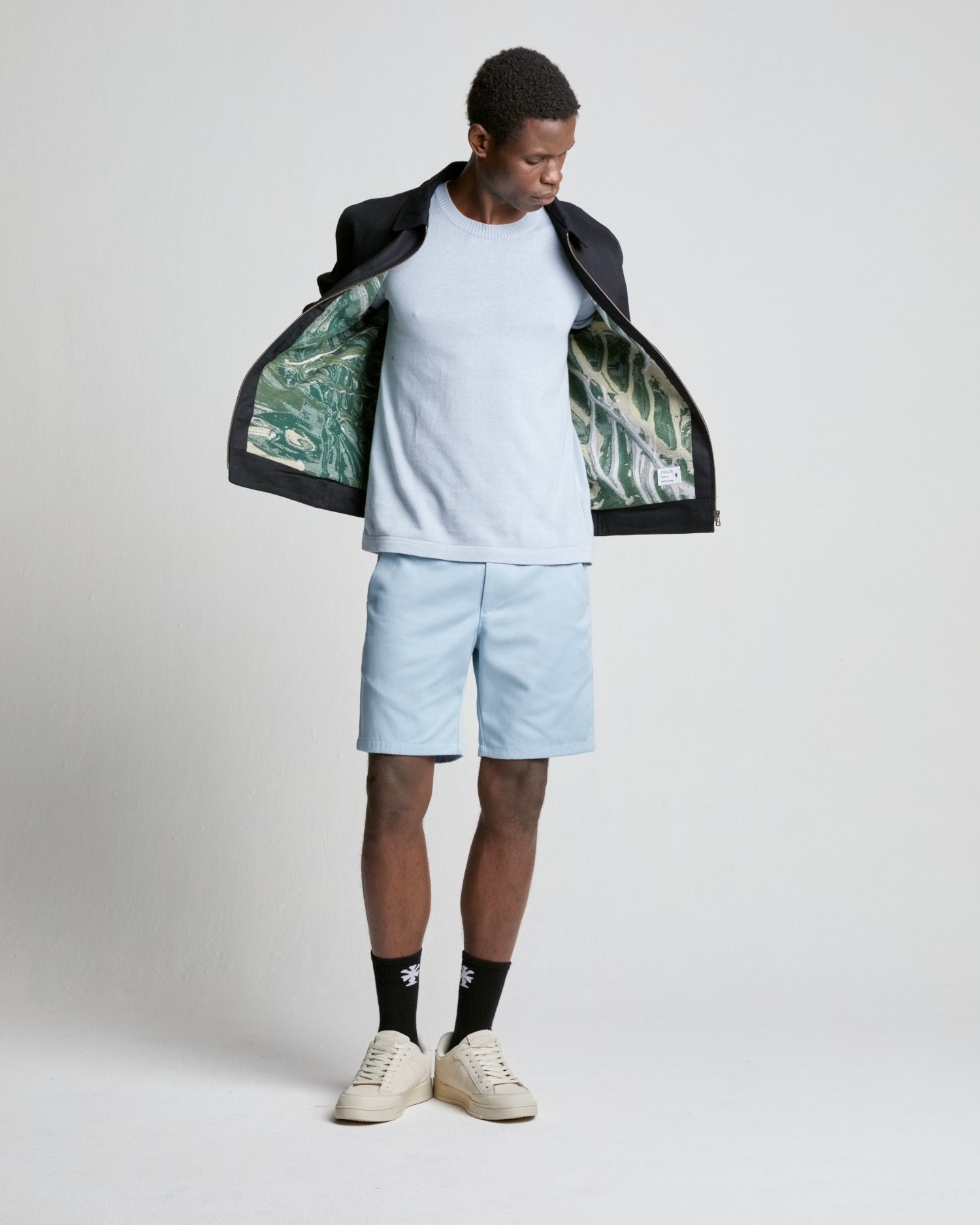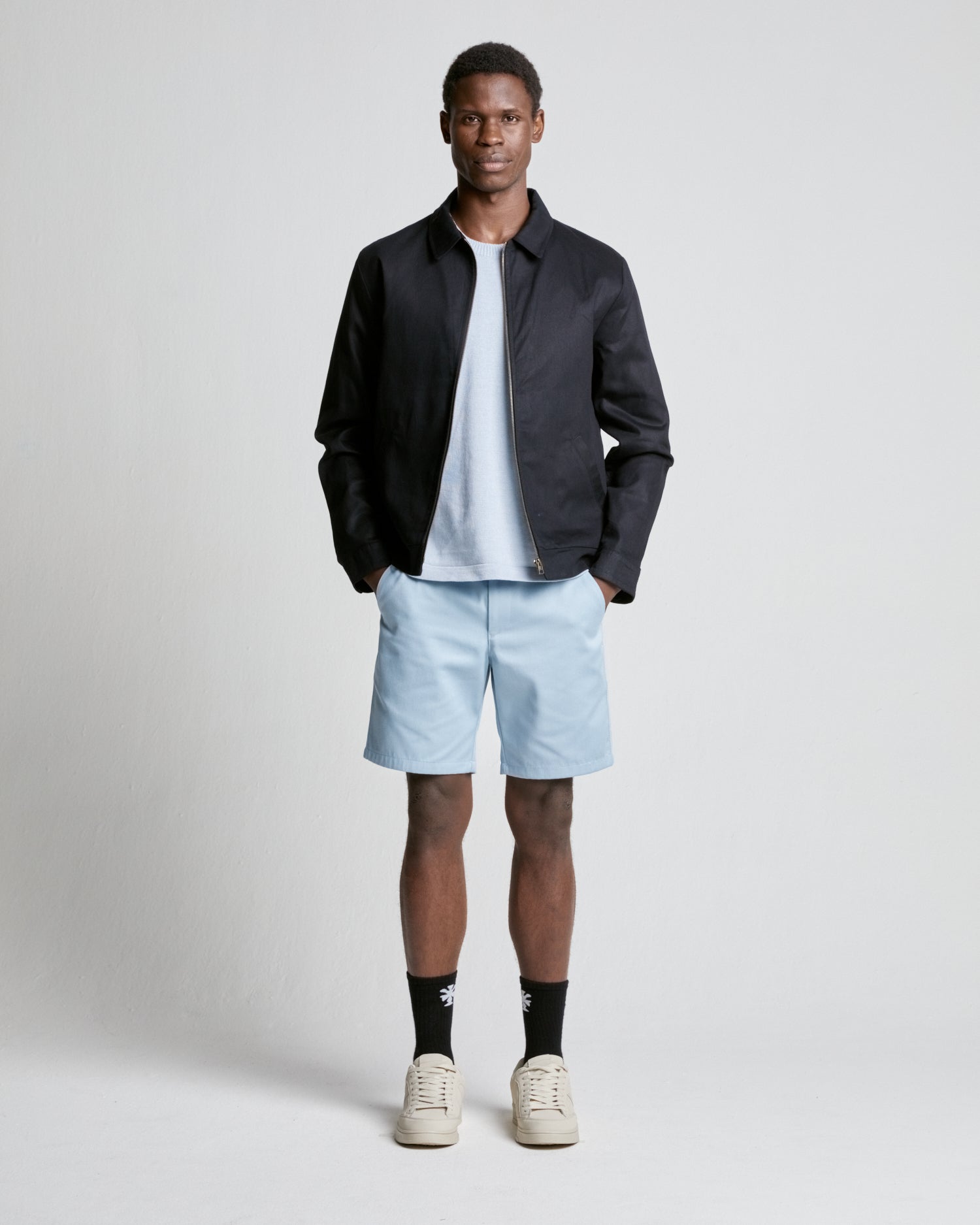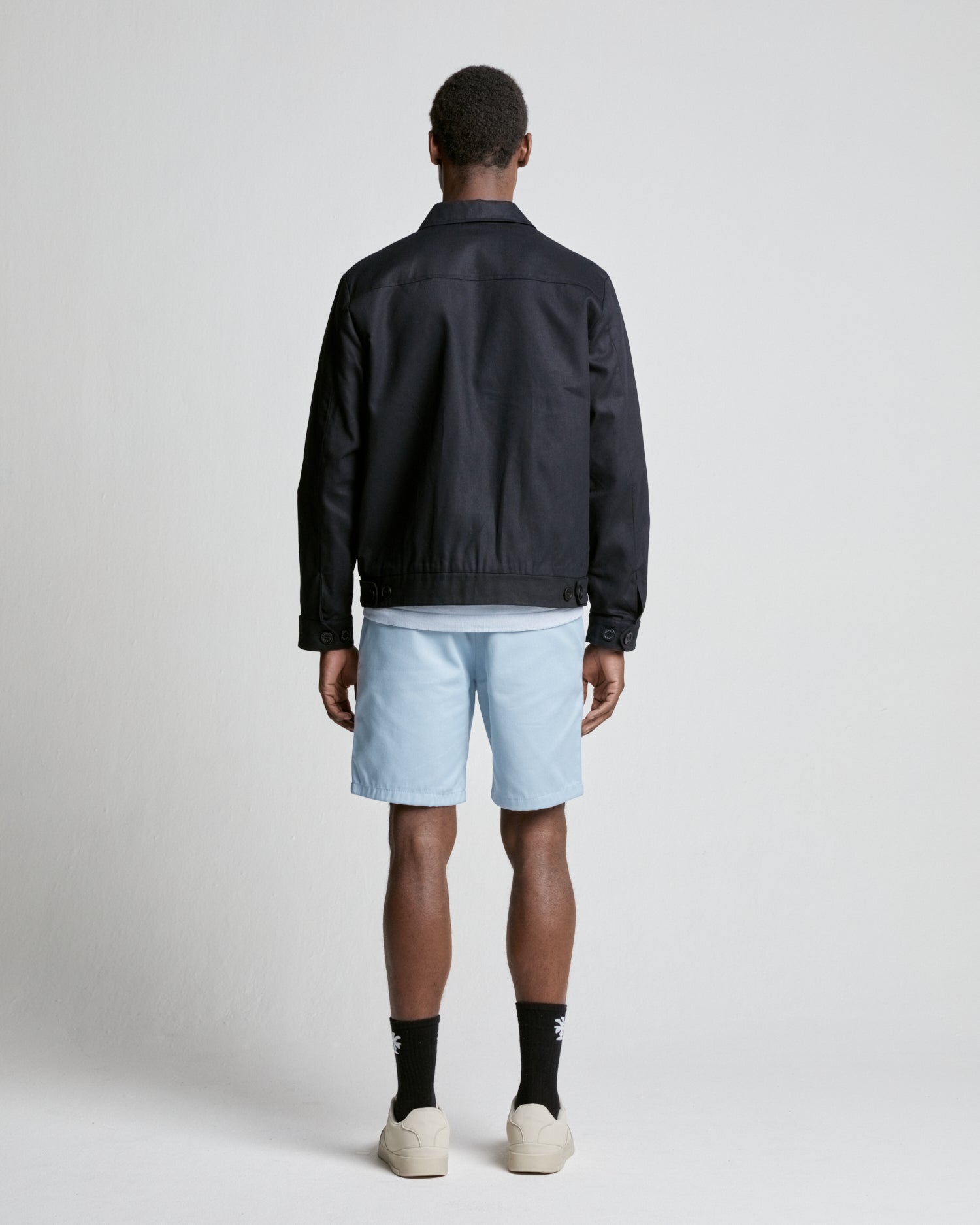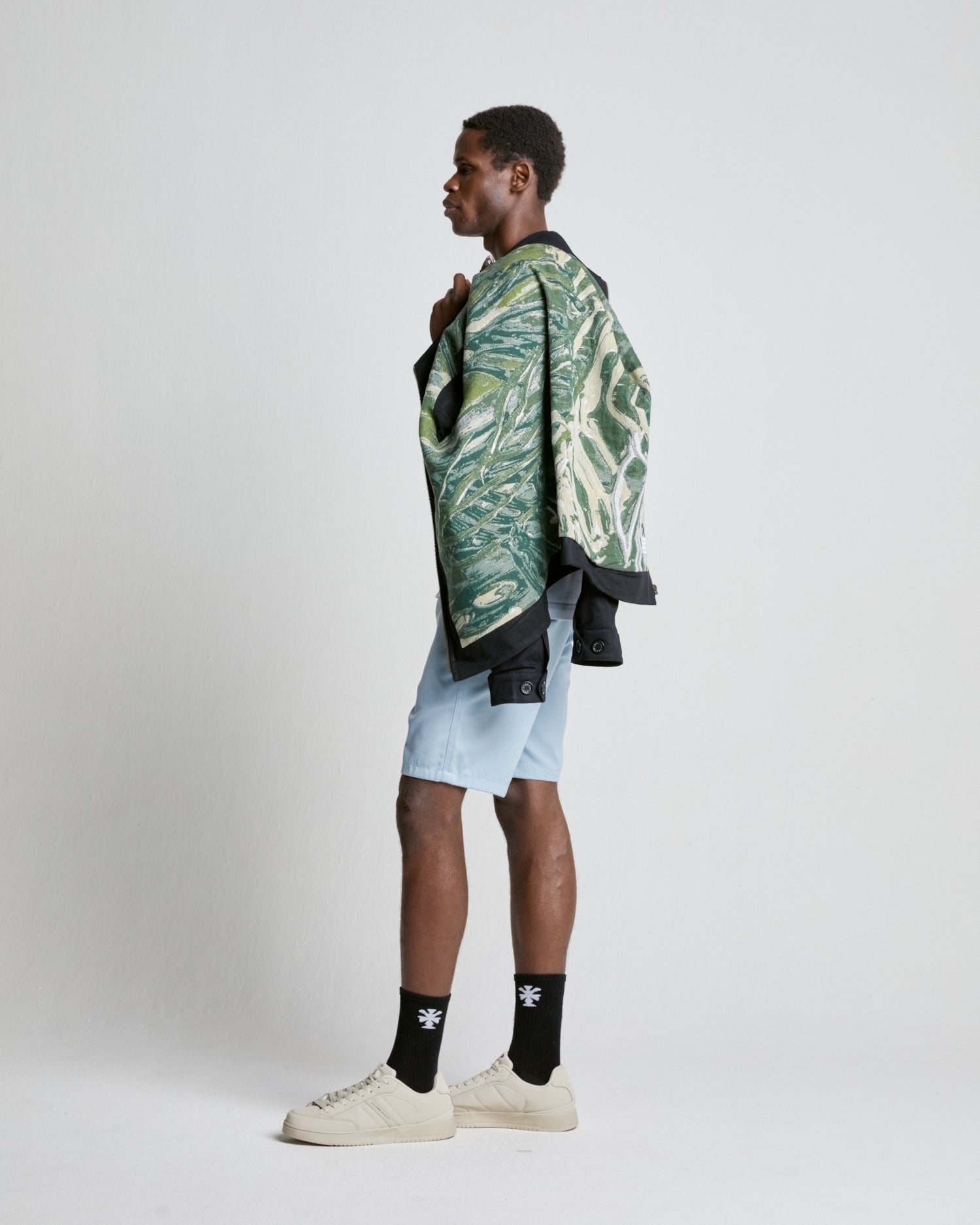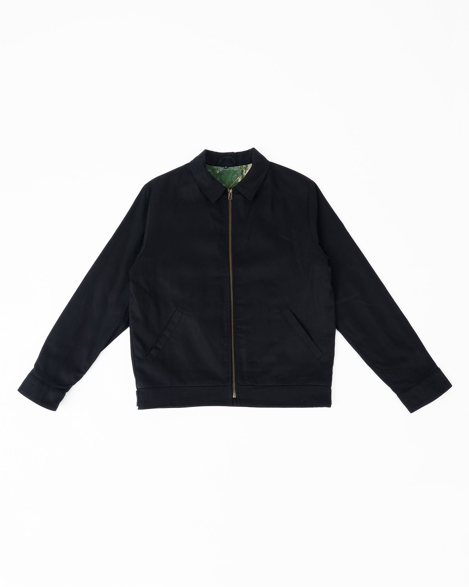 This Harrington style jacket has a tailored cut and is constructed in a heavyweight combed cotton twill. It features front angled welt pockets, a single inner breast (secret) pocket, and adjustment tabs on the sleeves and waistband to ensure a perfect fit. The lining's 100% cotton jacquard weave design is a translation of an artwork created by Gabrielle Kruger for FIELDS.