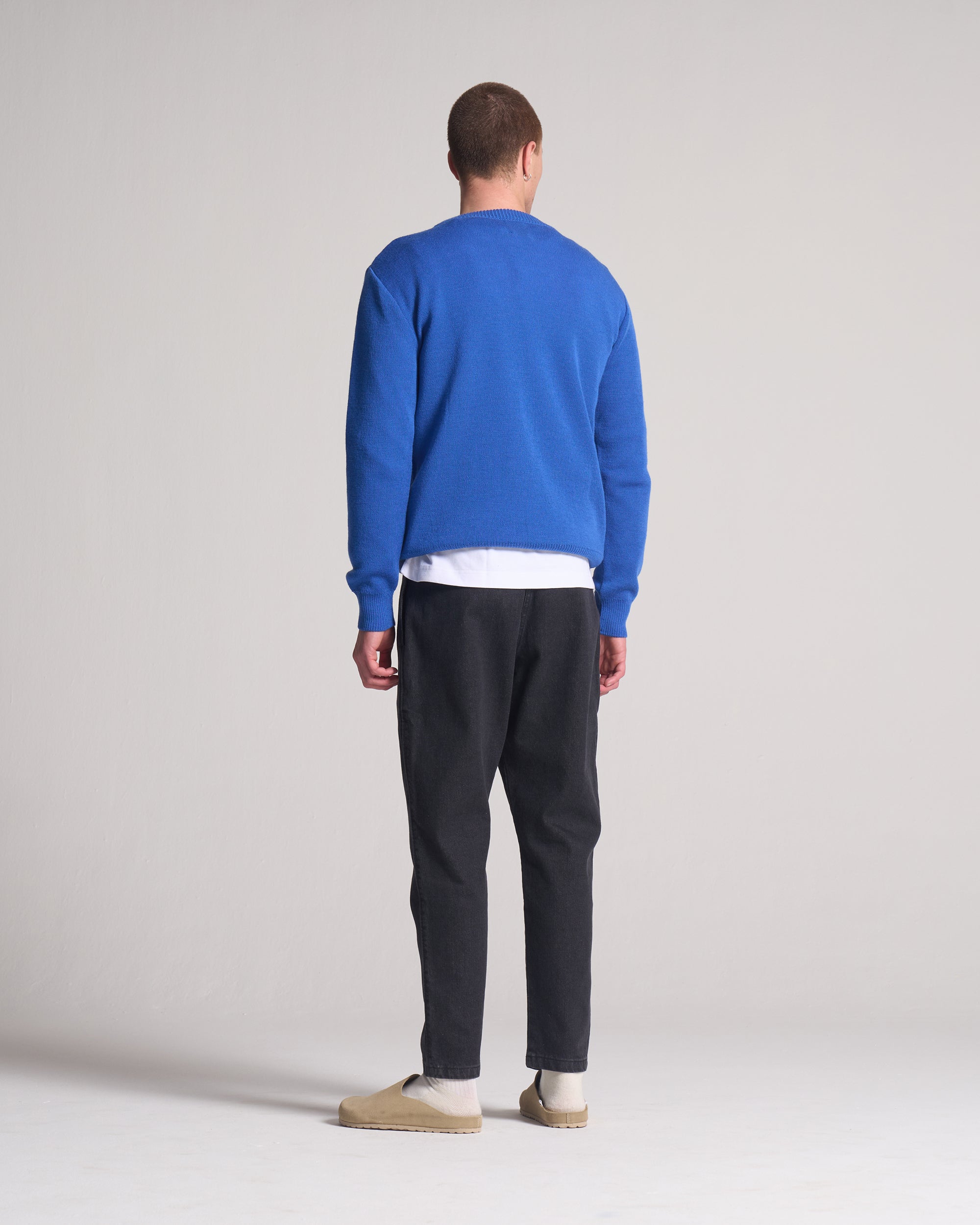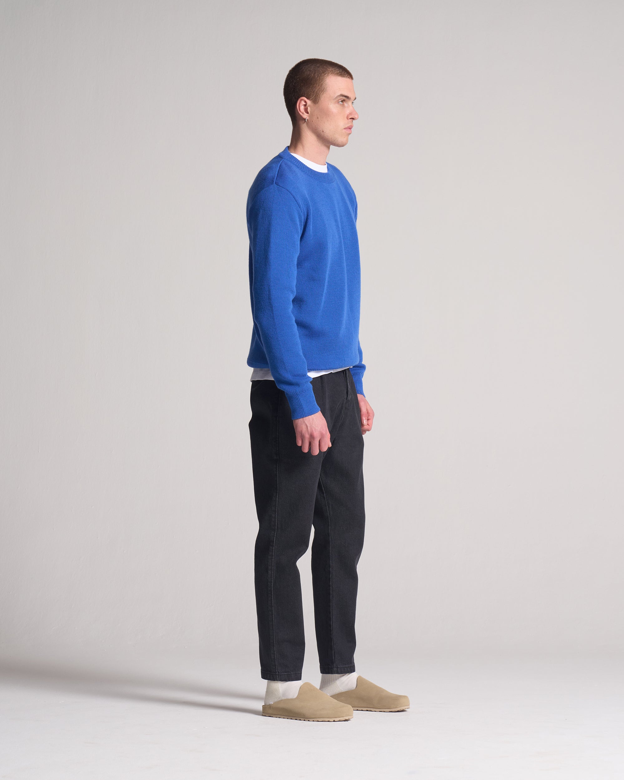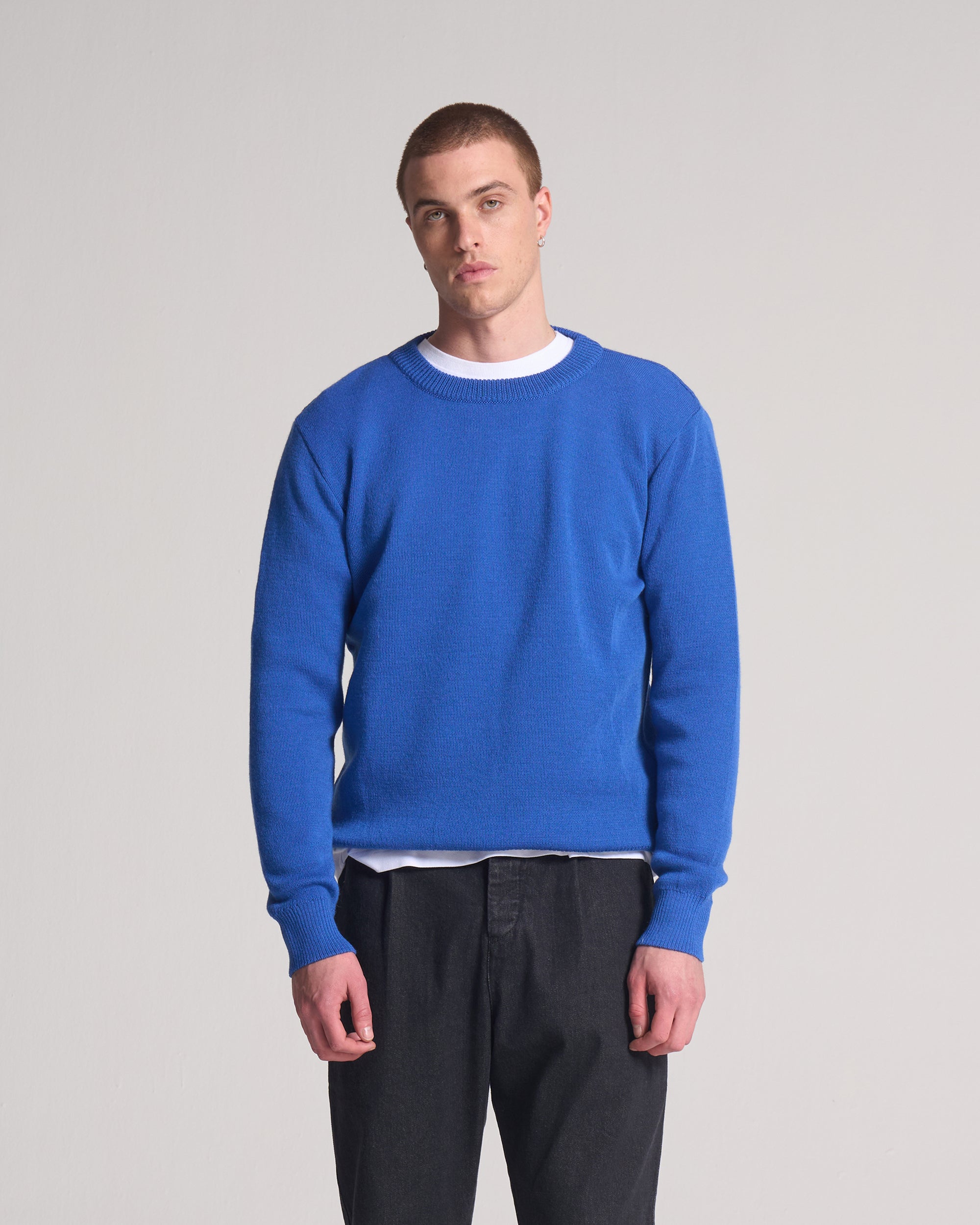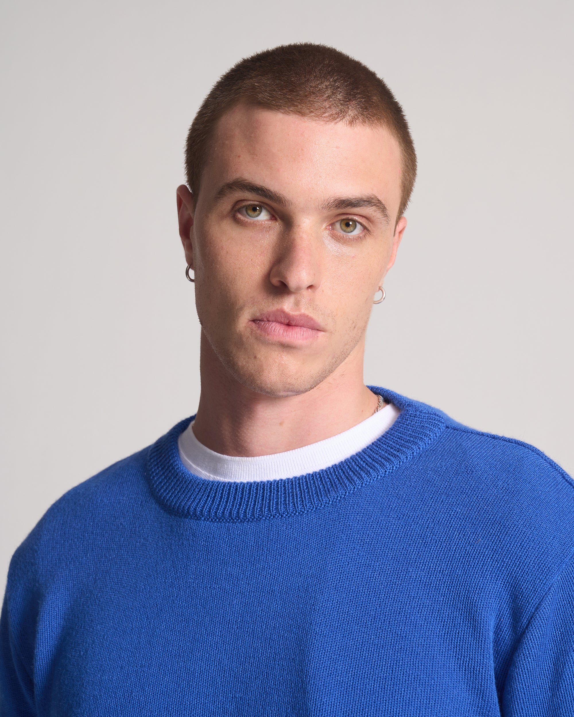 A soulful, soft, mid-weight 80% Merino wool and 20% kid Mohair round neck sweater featuring a wide rib neck and regular fit.