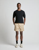 This tee has an easy but structured fit. Lucas wears a size medium and is 186cm tall.